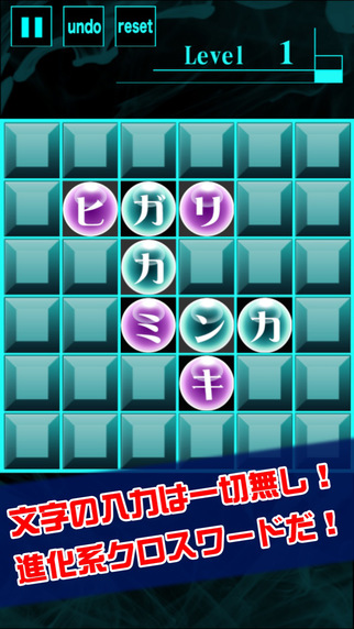 文字をテキスト入力する必要はなく、モジのパネルをスワイプで入れ替えて縦と横の軸で単語を作っていくワードパズル。