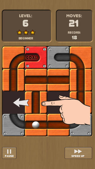 穴の開いたパネルをスライドさせて動くボールをゴールまで運ぶパズルゲーム。