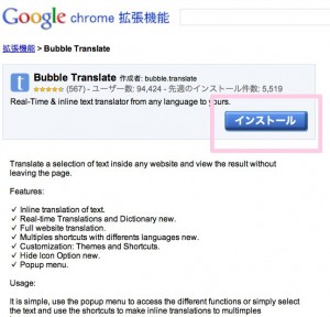 1.Bubble Translate をクリック。インストールをクリックします。