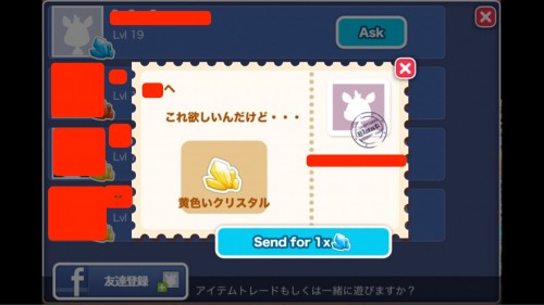 自分が欲しい色のクリスタルの友人にASKのボタンを押してお願いします。