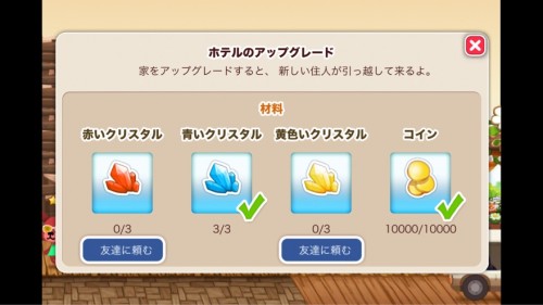 ホテルをアップグレードする時にクリスタルが必要になりますが、