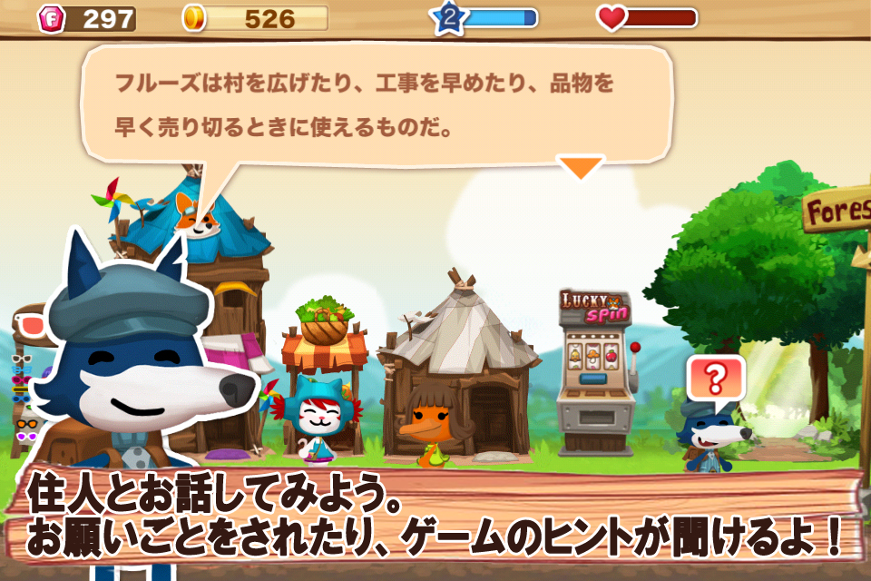 村人である動物からお願いごとを依頼され、これに従って行くことでゲームを進めていくので