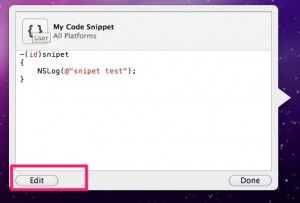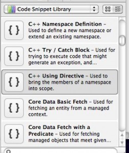 [2]ソースコードのテキストを選択し、Code Snippet library にドラッグ