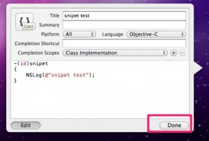 [7]スニペットの追加が完了するので、ドラッグアンドドロップでコードに貼り付けられる