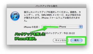 利用したいバックアップをとったiPhoneの名前を選択します。