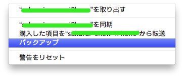 「バックアップから復元」はWi-Fi同期の状態だと選べないのでUSBケーブルで接続します。