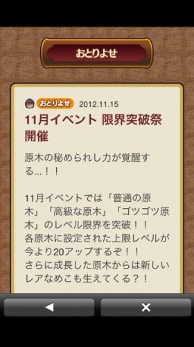 スタート後は「じい」のカテゴリから普通の原木を選び、イベント開始です。