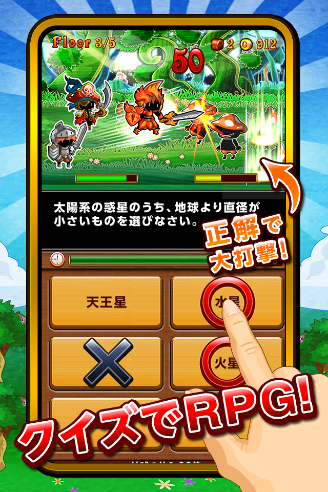 クイズに答えて敵を攻撃して各クエストのフロアーをすべてクリアしていきます。