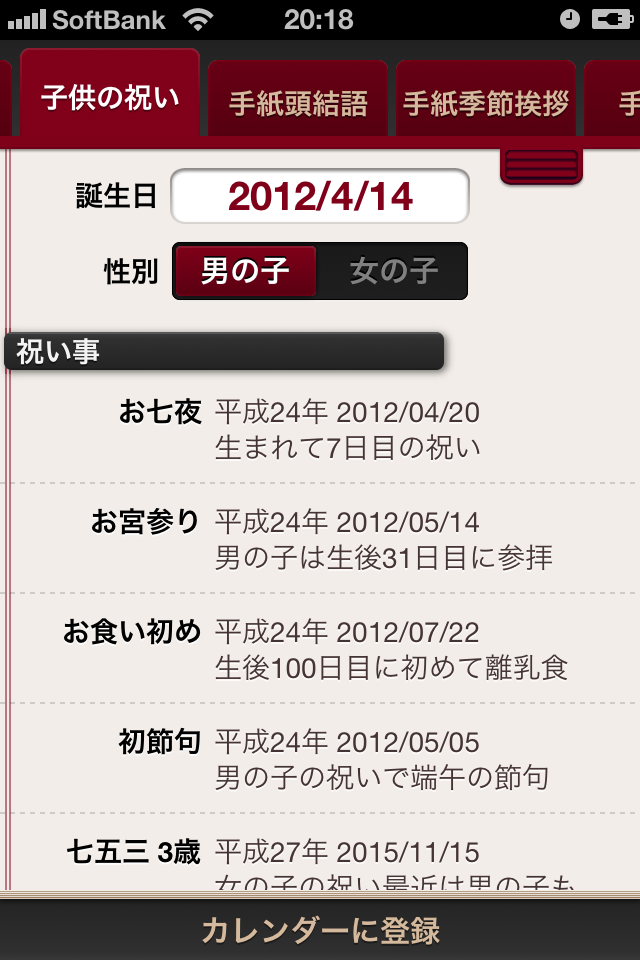 履歴書記入時に使用する「入学卒業年」、子供の祝い日、タクシー配車です。