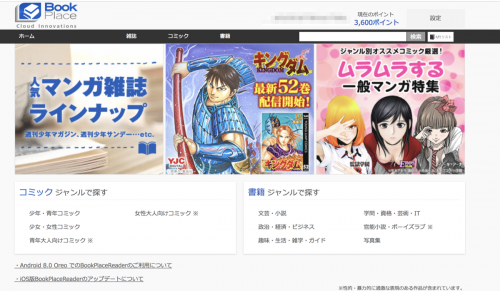 BookPlaceのページが表示されますので、読みたい漫画を選びます。