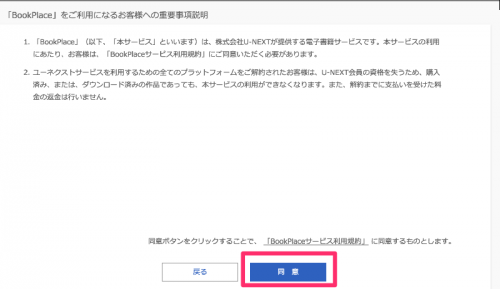 「BookPlaceをご利用になるお客様への重要事項説明」が表示されたら、「同意」のボタンを押します。