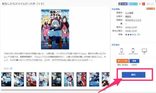ポイントOKになっている作品はポイントを使うと追加料金を書籍代を支払わずに漫画が読めます。