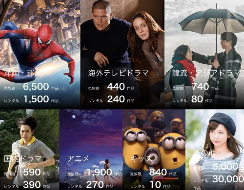 見放題15,000作品以上、レンタル3,000作品以上と充実のラインナップになっています。