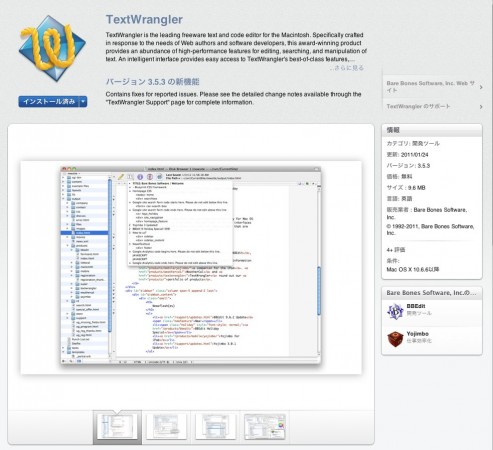 ダウンロードはApp Storeより『TextWrangler』で検索すると表示されます。