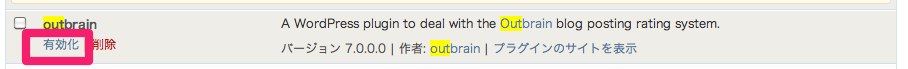 ダウンロードしたoutbrainフォルダをwordpressのpluginディレクトリにアップし、